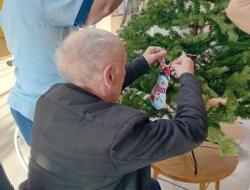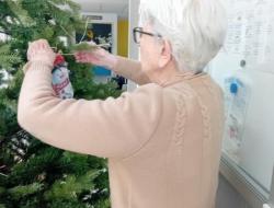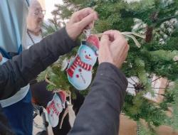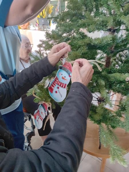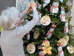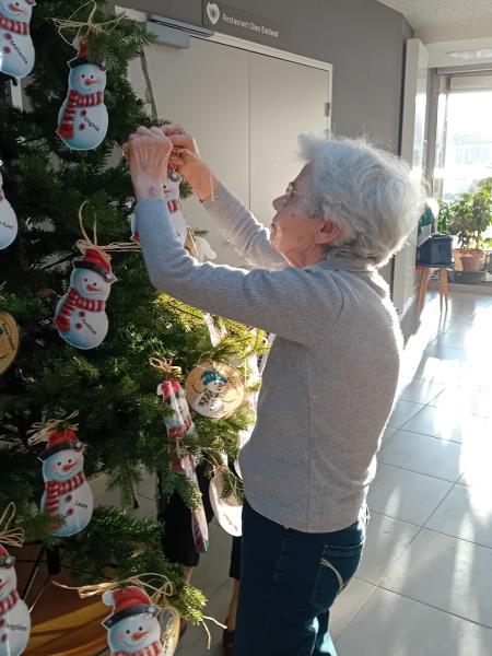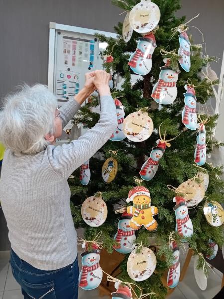 Le sapin est installé, chaque décoration portant le nom d'un résident,