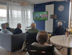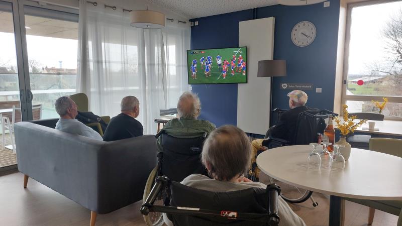 Un groupe de résidents s'est réunis dans un petit salon de la résidence pour partager le match FRANCE - ITALIE du tournoi des 6 Nations.